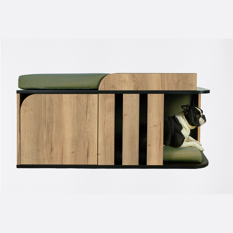 Doté de deux compartiments de rangement spacieux, il accueille chaussures, laisses, colliers, jouets ou accessoires du quotidien, dissimulés avec style.